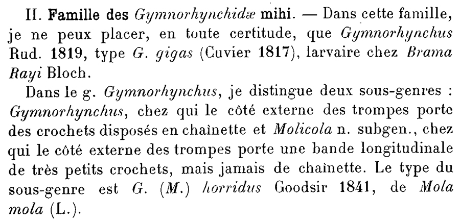 Scientific Name Notes Molicola is erected as a subgenus of Gymnorhynchus by Dollfus (1935) on page 355.