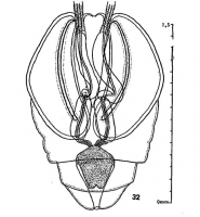Fig. 32.- Nybelinia eureia, n. sp., d’un Congridé indéterminé; Dakar, 23-6-1951. Postlarve