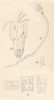 Plate II. Fig. 29. Tetrarhynchus perideraeus. x12. Showing the coiled portion of the body. Fig. 30. The head. x36. Fig. 30a. More highly magnified view of the proboscis of the same.