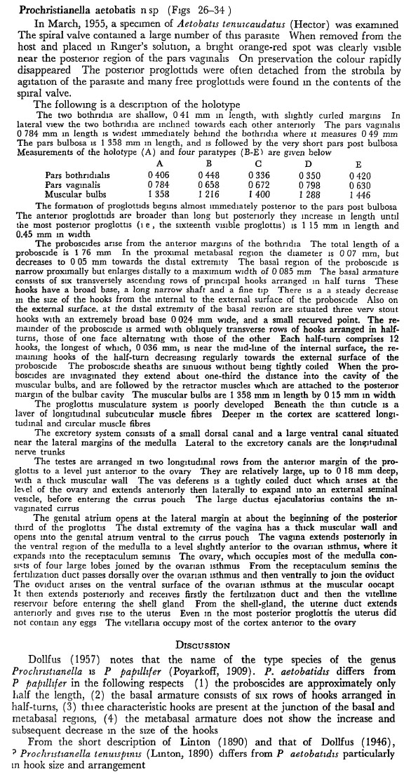 Robinson, E. S. 1959. Some new cestodes from New Zealand marine fishes. Transactions of the Royal Society of New Zealand 86: 381-392. (386) Download PDF |