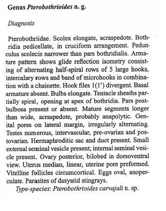 | Type Species | Pterobothrioides carvajali Campbell & Beveridge, 1997 |