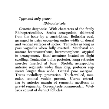 | Type Species | Rhinoptericola megacantha Carvajal & Campbell, 1975 |