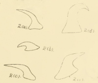 Explanation of Plate IV. Fig. 2 (a)-(e). - Various types of hooks found on the proboscides of R. ilisha.