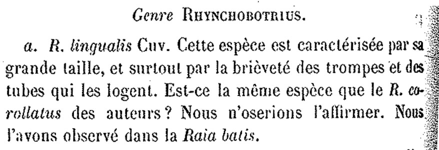 Cuvier, G. 1817. Le regne animal distribue d’apres son organisation pour servir de base a l”Histoire naturelle des animaux et d’introduction a l’anatomie comparee. , Paris, 255 pp. (4326) Download PDFvan Beneden, P.-J. 1850. Les helminthes cestoïdes, considérés sous le rapport de leurs métamorphoses, de leur composition anatomique et de leur classification, et mention de quelques espèces nouvelles de nos poissons plagiostomes. Bulletins de l’Académie Royale des Sciences, des Lettres et Beaux-Arts de Belgique 16(Part 2): 269-282. (470) Download PDF |