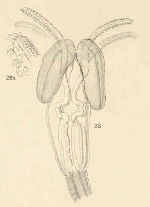 Plate II. Fig. 28. Tetrarhynchus gangeticus, head. x20. Fig. 28a. Still further enlarged view of proboscis.