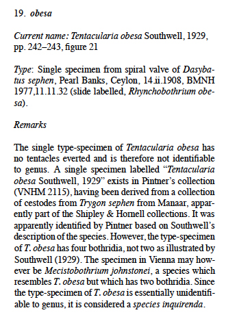 Southwell, T. 1929. A monograph on cestodes of the order Trypanorhyncha from Ceylon and India. Part I. Ceylon Journal of Science. Section B. Zoology and Geology 15: 169-312. (446) Download PDF |