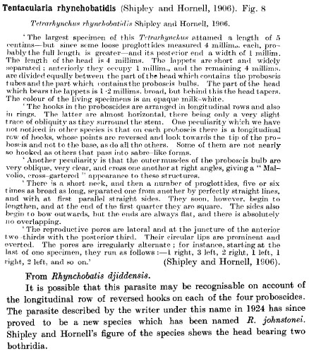 | Synonyms | Tetrarynchus rhynchobatidis Shipley & Hornell, 1906 |