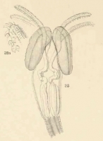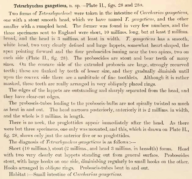 Plate II. Fig. 28. Tetrarhynchus gangeticus, head. x20. Fig. 28a. Still further enlarged view of proboscis.