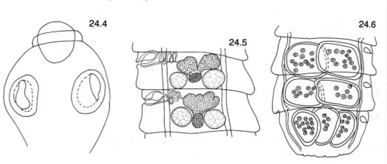 Jones, A. and R. A. Bray. 1994. Family Davaineidae Braun, 1900. In Keys to the cestode parasites of vertebrates, L. F. Khalil, A. Jones, and R. A. Bray (eds). CAB International, Wallingford, U.K., 407-444 pp.