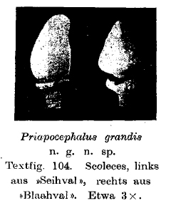 Textfig. 104. Scoleces, links aus »Seihval»; rechts aus Blaahval». Etwa 3x.