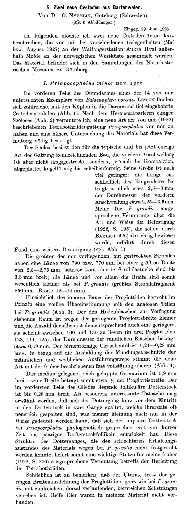 Nybelin, O. 1928. Zwei neue Cestoden aus Bartenwalen. Zoologischer Anzeiger, Leipzig 78: 309-314. (4235) Download PDF |