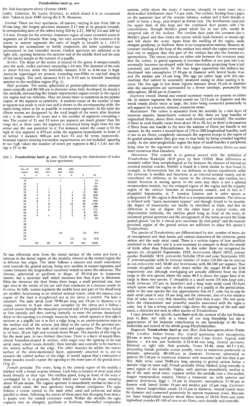 Burt, D. R. R. 1976. On two new tetrabothriid cestodes from the grown gannet or booby Sula leucogastra plots (Forster) from the Indian Ocean. Zoological Journal of the Linnean Society of London 58: 309-319. (4205) Download PDF |