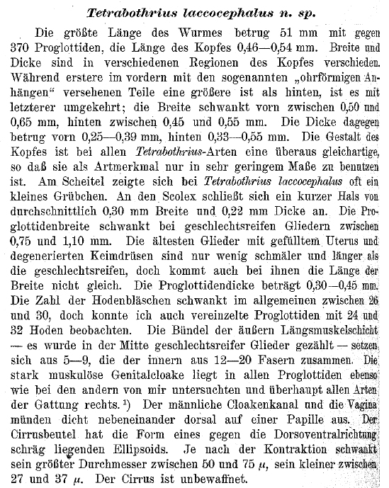 Spätlich, W. 1909. Untersuchungen über Tetrabothrien. Ein Beitrag zur Kenntnis des Cestodenkörpers. Zoologische Jahrbücher. Abteilung für Anatomie und Ontogenie der Tiere. 28: 539-594. (4239) Download PDF |