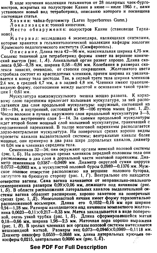 Muraveva, S. L. 1968. Tetrabothrius morschtini n.sp. from the polar gull. Nauchnye Doklady vysshei Shkoly. Biologicheskie Nauki 1968(4): 11-13. (6694) Download PDF |