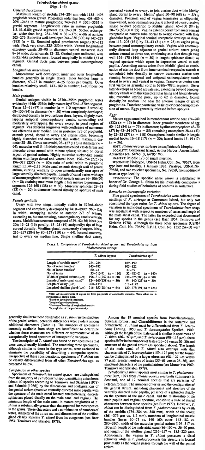 Hoberg, E. P. 1987. Tetrabothrius shinni sp.n. (Eucestoda), from Phalacrocorax atriceps bransfieldensis (Pelecaniformes) in Antarcita, with comments on morphological variation and host-parasite biogeography and evolution. Canadian Journal of Zoology 65: 2969-2975. (4218) Download PDF |