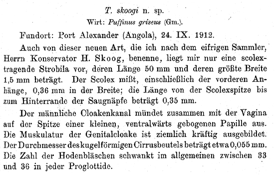 Nybelin, O. 1916. Neue Tetrabothriiden aus Vogeln (Vorlaufige Mitteilung). Zoologischer Anzeiger, Leipzig 47: 297-301. (4234) Download PDF |