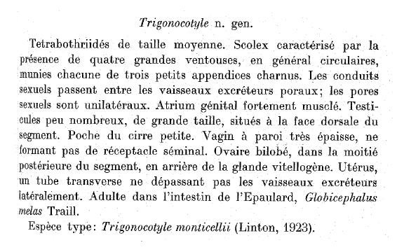 Baer, J. G. 1932. Contribution a lŽetude des cestodes de Cetace. Revue Suisse de Zoologie 39(3): 195-228.