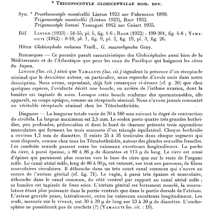 Baer, J. G. 1954. Revision taxinomiqu et étude biologique des Cestodes de la famille des Tetrabothriidae. Mémories de l´Université de Neuchatel, , 121 pp. (6479) Download PDF |