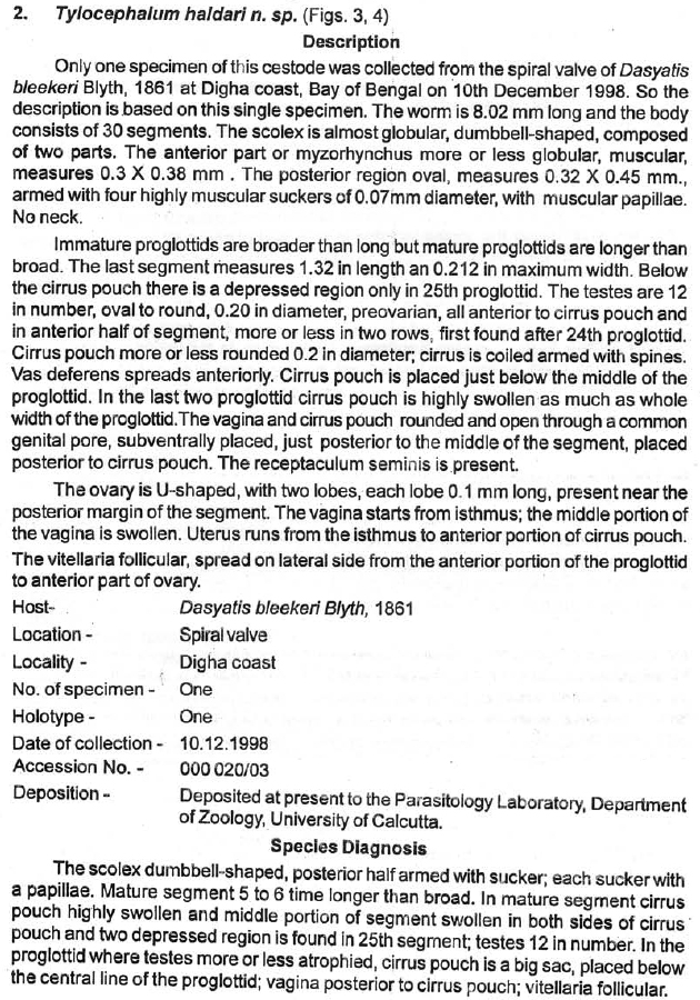 | Type Material | Parasitology Laboratory, Dpt of Zoology, University of Calcutta No. 000020/03 (1 holotype) |