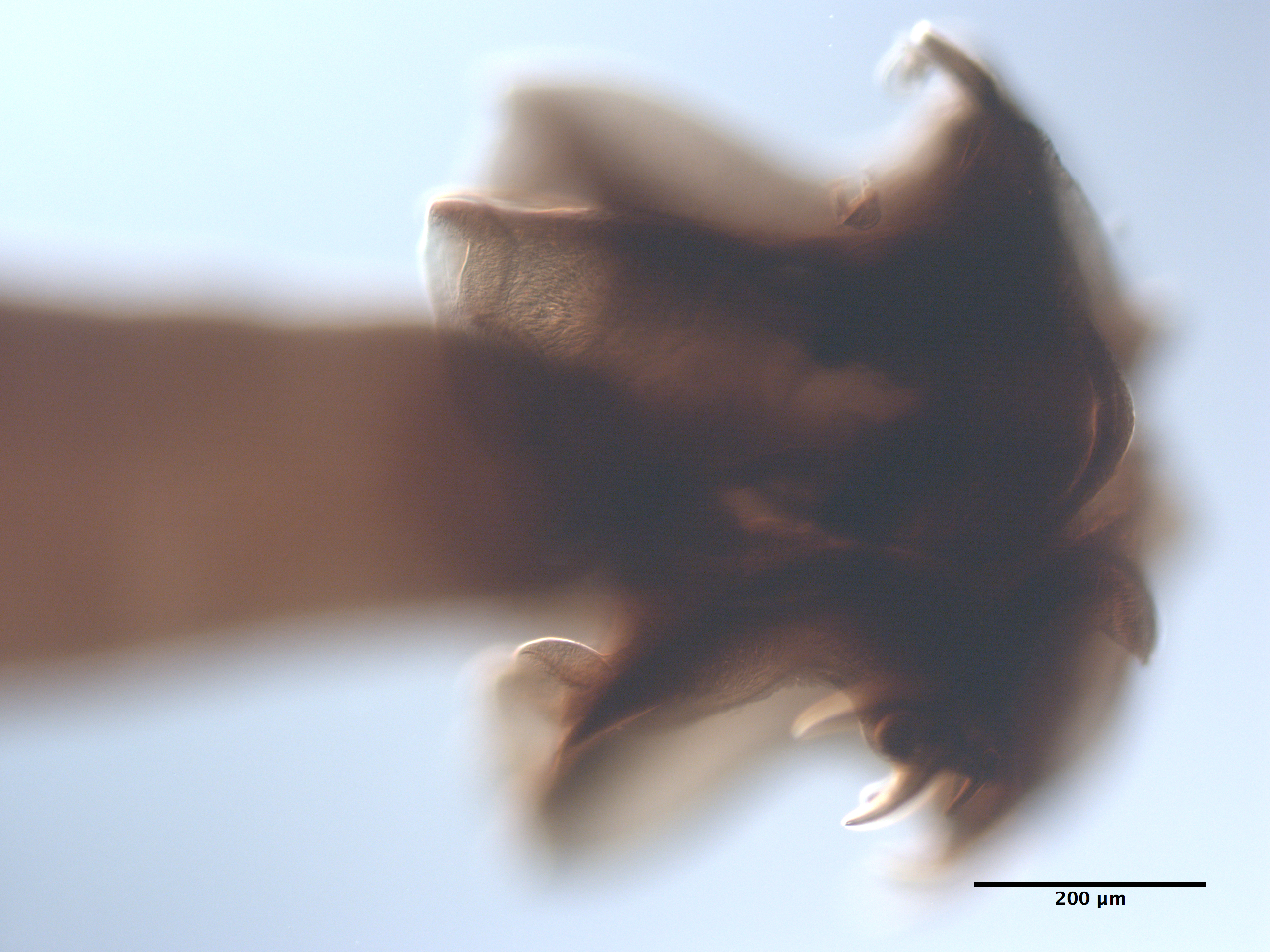 | Total Number of Type Specimens | 2 syntype and 7 voucher specimens: 4 whole mounts of mature worms [3 incomplete], 3 whole mounts of immature worms [some incomplete], and 2 scolices prepared for SEM |