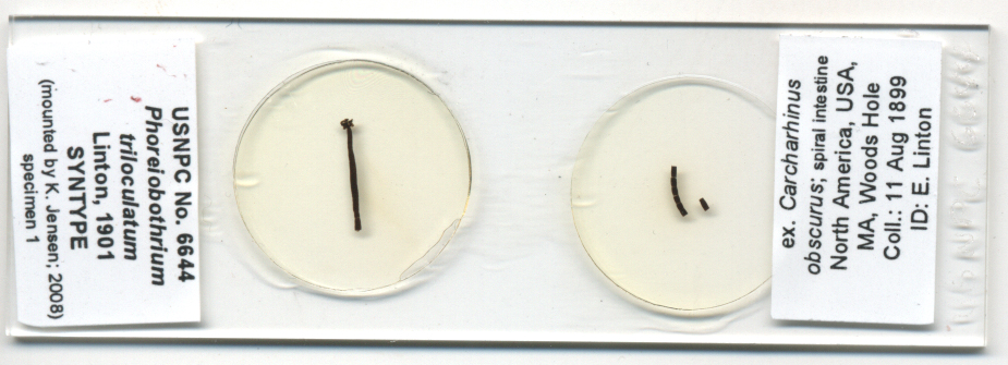 | Synonyms | Phoreiobothrium triloculatum Linton, 1901 |