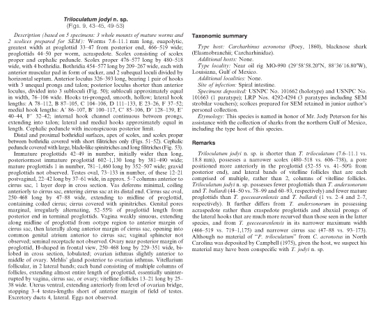 | Type Material | USNPC No. 101662 (holotype); USNPC No. 101663 (paratype); LRP Nos. 4292-4294 (3 paratypes including SEM strobilar vouchers); scolices prepared for SEM retained in junior author's personal collection. |