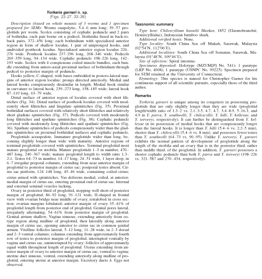 | Total Number of Type Specimens | whole mounts of 3 worms and 1 specimen prepared for SEM |