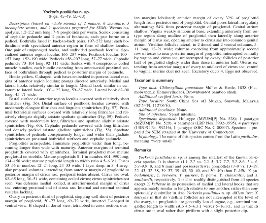 Yorkeria pusillulus Caira, Jensen & Rajan, 2007