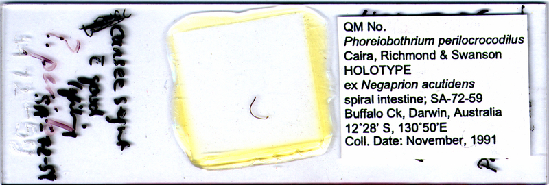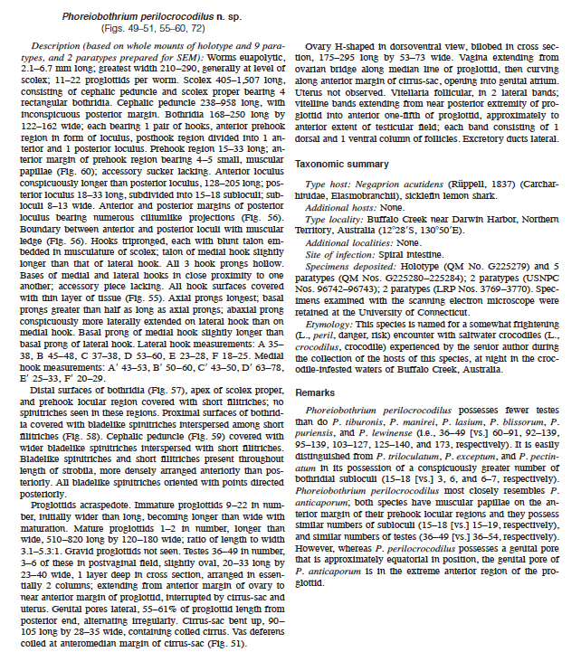 Caira, J. N., C. Richmond, and J. Swanson. 2005. A revision of Phoreiobothrium (Tetraphyllidea: Onchobothriidae) with descriptions of five new species. Journal of Parasitology 91: 1153-1174. (3890) Download PDF |