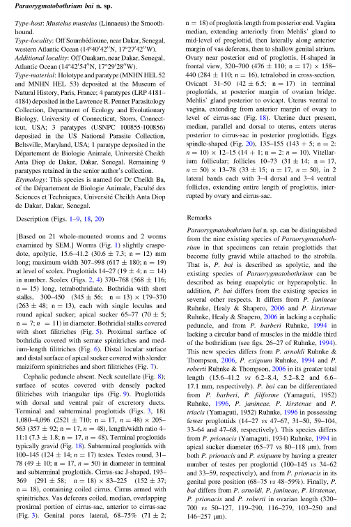| Total Number of Type Specimens | 21 whole-mounted worms and 2 worms examined by SEM. |