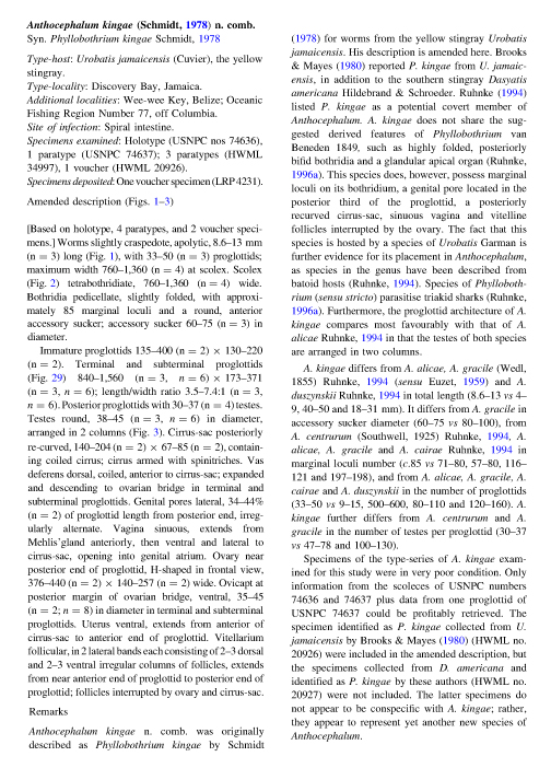 | Synonyms | Phyllobothrium kingae Schmidt, 1978 |