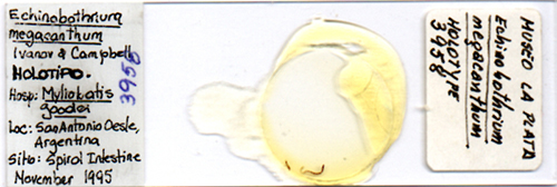 | Total Number of Type Specimens | 6 complete specimens and 7 fragmented specimens with scolex |