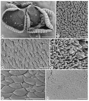 regions of strobila. 33. Enlarged view of scutes; note scutes composed of elongate filitriches. Scale-bars: 28, 100 µm;
