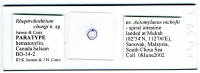 Jensen, K. and J. N. Caira. 2006. The status of Rhoptrobothrium Shipley et Hornell, 1906 (Cestoda: Tetraphyllidea), with redescription of the type species, R. myliobatidis, and description of three new species from two species of Aetomylaeus (Myliobatiformes: Myliobatidae) from Malaysian Borneo. Folia Parasitologica 53: 189-207. (4505) Download PDF |