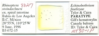 | Additional Localities | Bahia de Los Angeles (28° 55'N, 110° 25'W), Santa Rosalia (27° 19'N, 112° 17'W), Loreto (26° 01'N, 111° 21'W), Punta Arenas (24° 08'N, 110° 25'W), Gulf of California, Mexico |