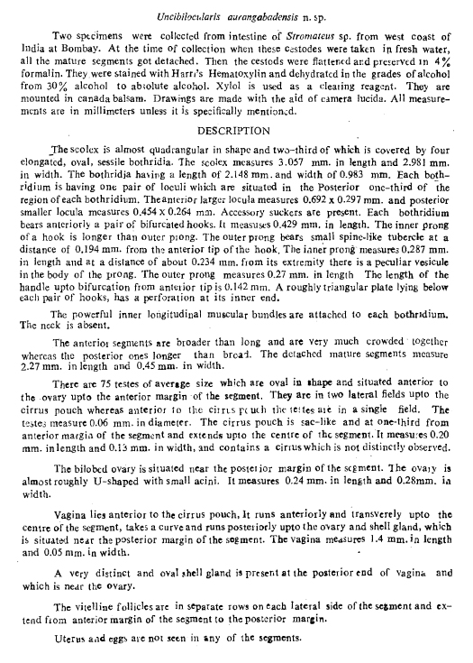 Deshmukh, R. A. and G. B. Shinde. 1975. On a new species of a genus Uncibilocularis Southwell, 1925 (Shipley et Hornell, 1906) from a marine fish from west coast of India. Marathwada University Journal of Science 14: 333-337. (4537) Download PDF |
