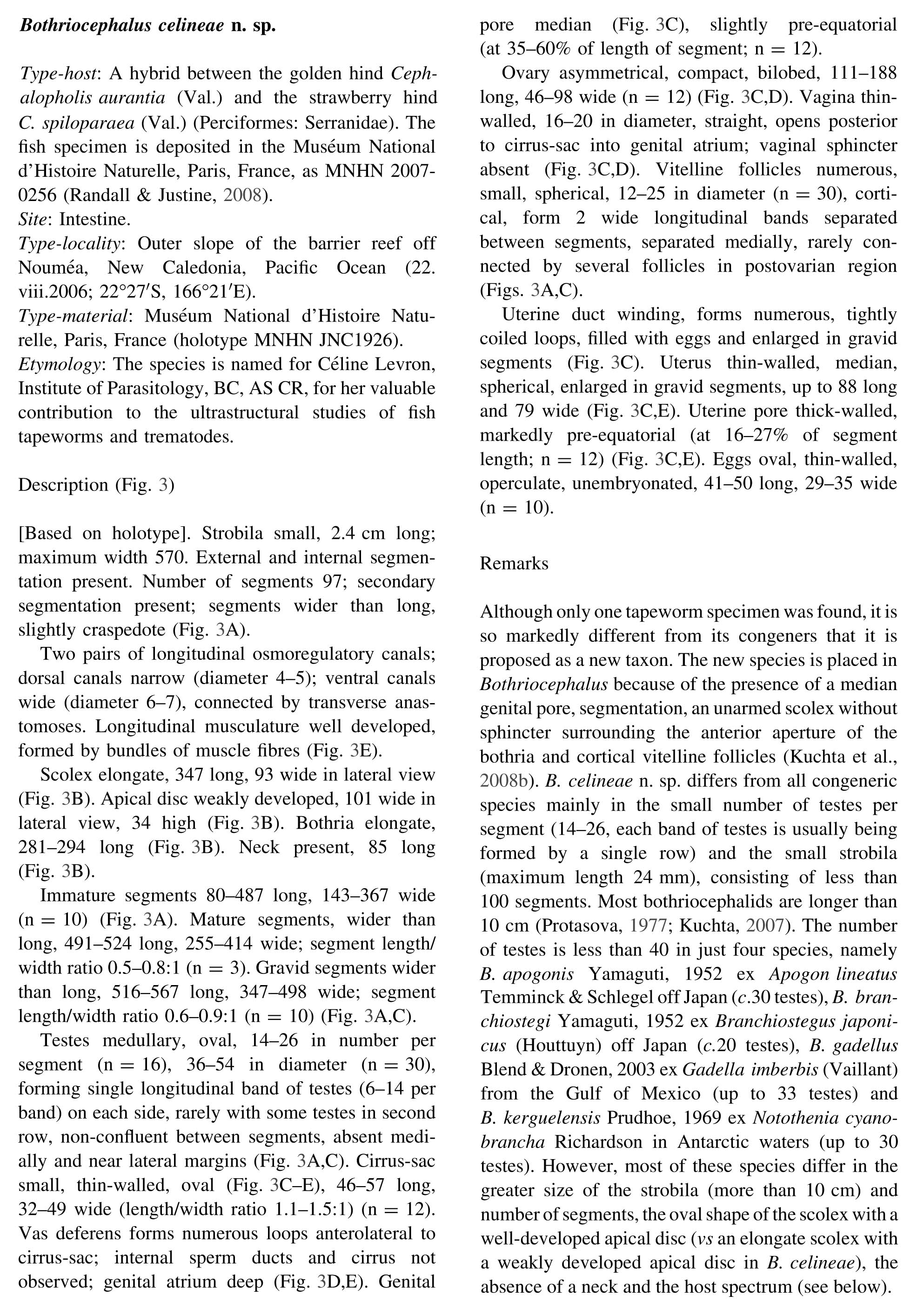 Kuchta, R., T. Scholz, and J.-L. Justine. 2009. Two new species of Bothriocephalus Rudolphi, 1808 (Cestoda: Bothriocephalidea) from marine fish off Australia and New Caledonia. Systematic Parasitology 73: 229–238. (4562) Download PDF |
