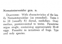 | Type Species | Nematotaenoides ranae Ulmer & James, 1976 |