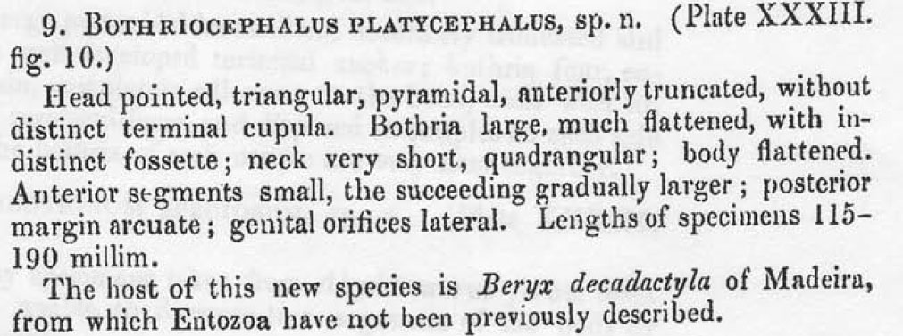 Monticelli, F. S. 1889. Notes on some Entozoa in the collection of the British Museum. Proceedings of the Zoological Society of London 57: 321-325. (580) Download PDFKuchta, R., T. Scholz, and R. A. Bray. 2008. Revision of the order Bothriocephalidea Kuchta, Scholz, Brabec & Bray, 2008 (Eucestoda) with amended generic diagnoses and keys to families and genera. Systematic Parasitology 71: 81-136. (4553) Download PDF |
