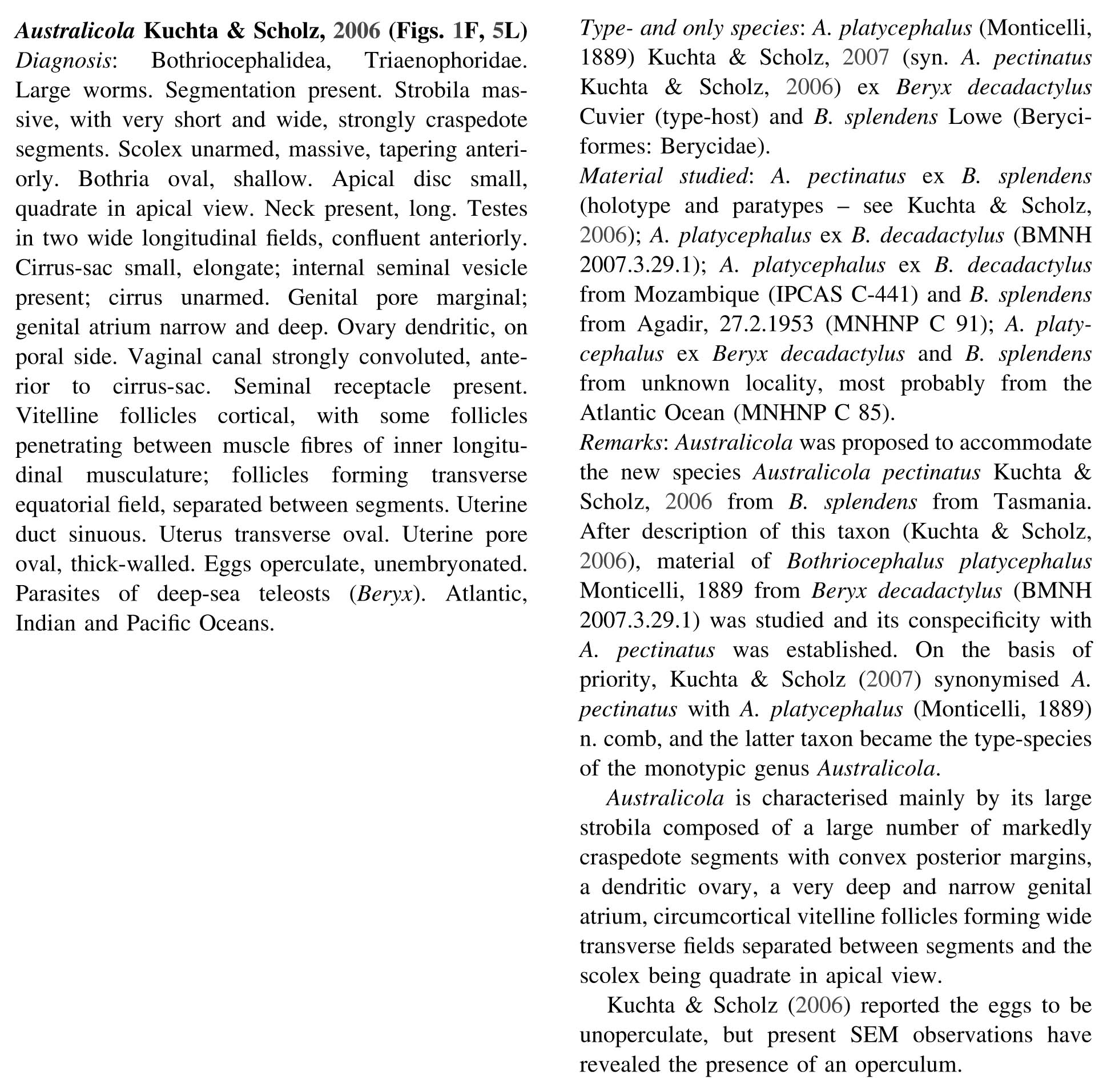| Synonyms | Australicola pectinatus Kuchta & Scholz, 2006 |
