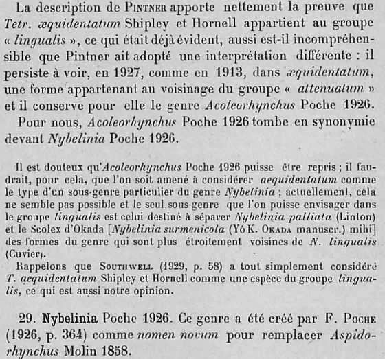 Dollfus, R.-P. 1929. Sur les Tetrarhynques. Definition des genres. Bulletin de la Societe Zologique de France 54: 308-342.