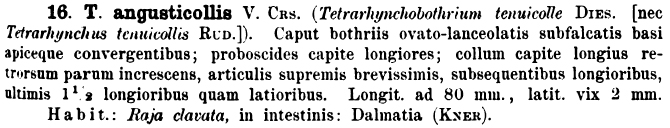 Synonyms Tetrarhynchobothrium tenuicolle of Diesing