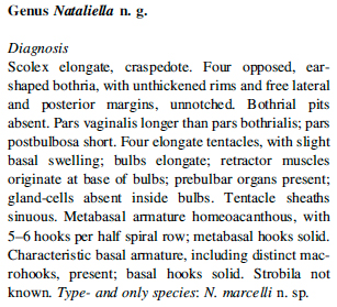 | Type Species | Nataliella marcelli Palm, 2010 |