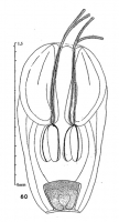Fig. 60. Nybelinia senegalensis, n. sp., de Hynnis goreensis (Valenciennes 1846). Postlarvae.