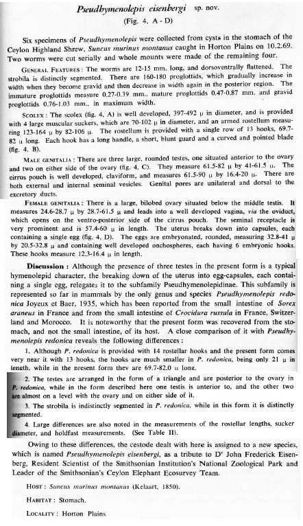 Crusz, H. and V. Sanmugasunderam. 1971. Parasites of the relict fauna of Ceylon. II. New species of cyclophyllidean cestodes from small hill-vertebrates. Annales de Parasitologie Humaine et Comparée 46(5): 575-588. (4812) Download PDF |