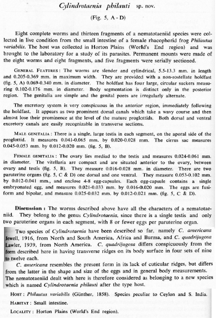 Crusz, H. and V. Sanmugasunderam. 1971. Parasites of the relict fauna of Ceylon. II. New species of cyclophyllidean cestodes from small hill-vertebrates. Annales de Parasitologie Humaine et Comparée 46(5): 575-588. (4812) Download PDF |