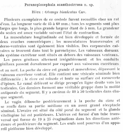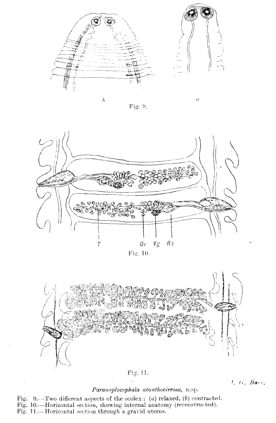 | Synonyms | Paranoplocephala acanthocirrosa Baer, 1924; Anoplocephaloides acanthocirrosa (Baer, 1924) Rausch, 1976 |