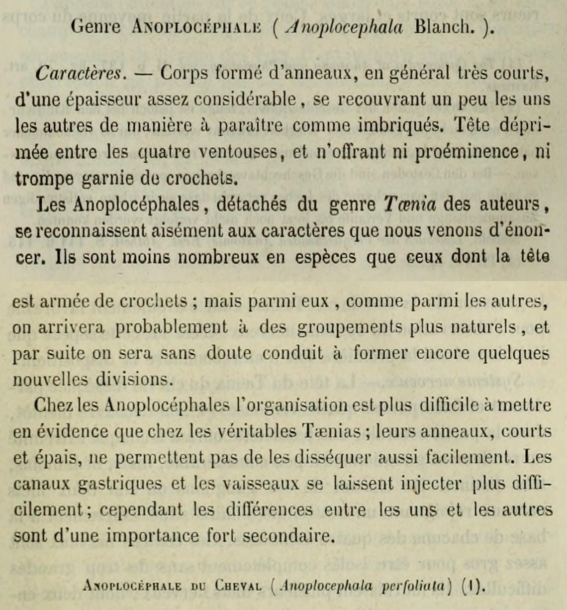 Type Species Anoplocephala perfoliata (Goeze, 1782) Blanchard, 1848, syn. Taenia perfoliata Goeze, 1782