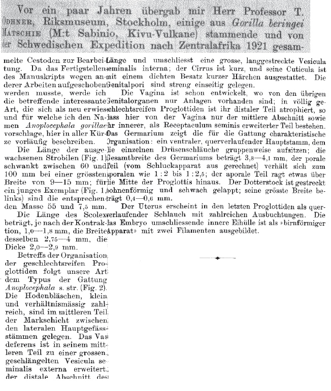Nybelin, O.. 1927. Anoplocephala gorillae. Arkiv för Zoologi 19 B: 1-3. (4639) Download PDF |