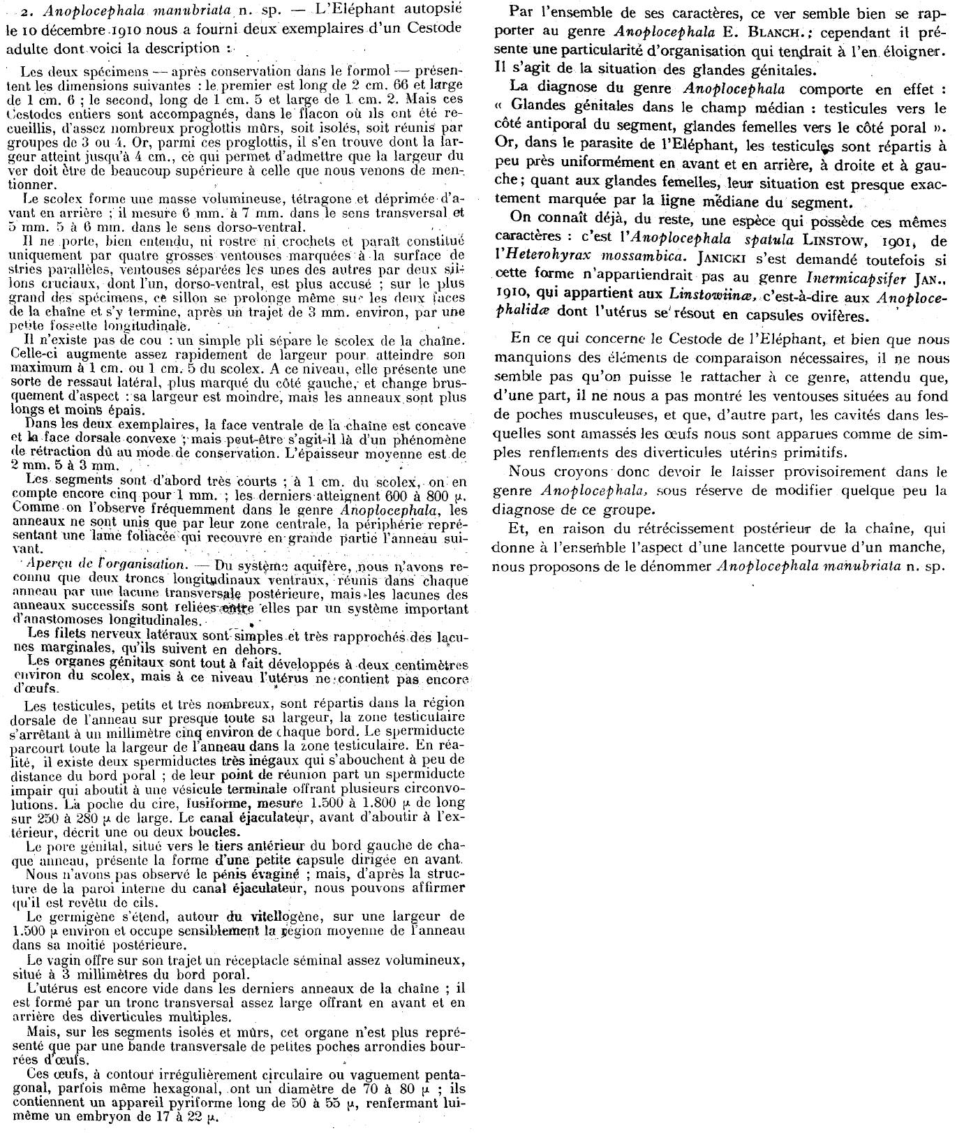 | Authority | Railliet, Henry & Bauche, 1914 |